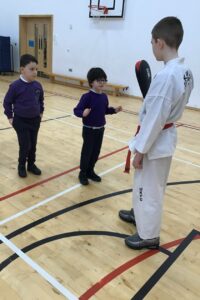 On Tuesday, we were very lucky to take part in a Taekwondo taster session. Some of the children in Room 2 go to Taekwondo lessons and saw their instructor at the session. We did a quick warm up and then completed some fun moves using the pads. We had a super time and even left with a sticker for our efforts! π