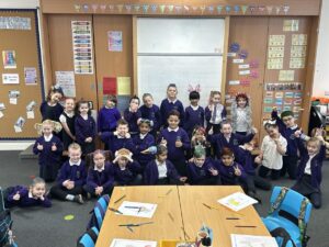 Today was a very strange day because the class had crazy hair. However, Mr Allen forgot, so we had to design a Crazy hair style for him to do next year. Mr Allen and Ms Ferguson were very impressed with all of the efforts with our hair this morning, thank you to all the grown ups for helping. Here is a picture below of our class.