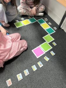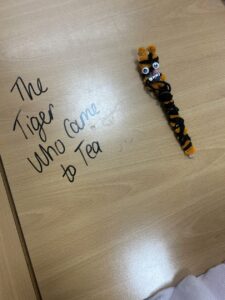 We then used the Indi’s to build an algorithm for a story! We sequenced well known stories such as the Three Little Pigs and The Tiger Who Came to Tea and created an algorithm for Indi to follow to show the path of the story. We are very good at using the Indi’s already so it was fun to challenge ourselves in a different way.