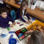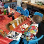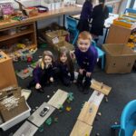 Some pupils worked on painting transport they had made from cardboard when learning about transport across cities and the countryside. Can you spot the Glasgow subway? π