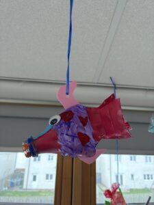 This week as part of our topic on sustainability we have been learning all about plastic, and how hard it can be to recycle. A lot of it ends up in landfills, damaging our planet. We decided to use some plastic bottles to create some art and they turned out fantastically.