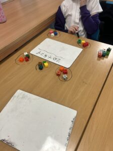 We have been revising our knowledge of division this week and used the loose parts we have in our classroom to help us see clearly what division is. We then linked it to our knowledge of our times tables. This means we will be able to apply our skills in trickier ways!