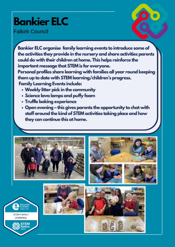 - STEM education is a regular feature in our school or setting events and communications with parents and families.