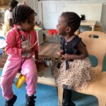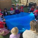 children using gestures, visual clues and active involvement to encourage the toddler to participate and explore language.