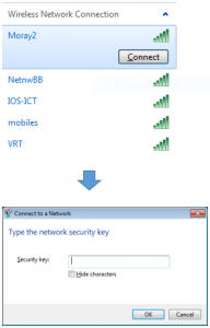 • Clicking on the icon will present a list of available WiFi networks – you should see something similar to the image below. You should select the ‘name’ of your router from the list, click ‘Connect’ and then enter the password:-