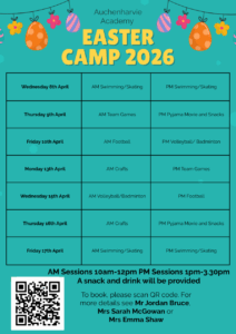 To sign up, simply scan the QR code included on the schedule poster or click the link Easter Camp Booking Form – Fill in form and choose as many activities as your child would like to take part in.