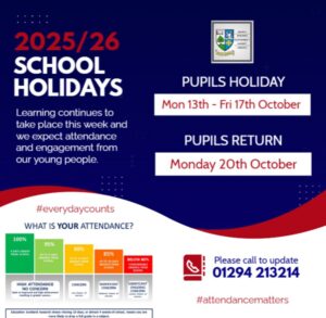 As we approach the end of Term 1, it is important for all young people to maintain good attendance and engage in learning. Staff continue to plan and deliver learning activities in order for pupils to achieve their full potential. Pupils should be in school all this week Monday through to Friday.