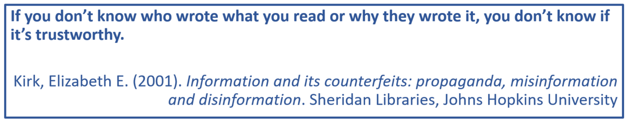 Since you will be expected to use only credible, high quality sources of information to increase your understanding of the topic you are researching, it is essential that you are aware of the different types of sources which exist, and that you know how to evaluate them by recognising bias, opinion, misinformation and disinformation, as well as being aware of reliable sources which give a well balanced, informative view.