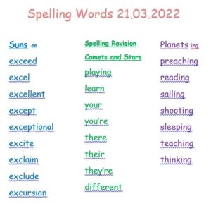 *Official homework is finished for this term, however I thought I would put the spelling words up for those people isolating at home as you may be looking for something to do. There are more activities over on the Isolation tab too. *