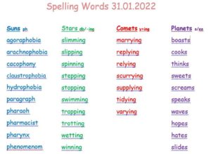 Your spelling words for the week are listed in the table below. Click on the link for some ideas to help you practise them. Feel free to email me a picture of what you get up to and I can add it to our Active Spelling page. Spelling Homework Activities