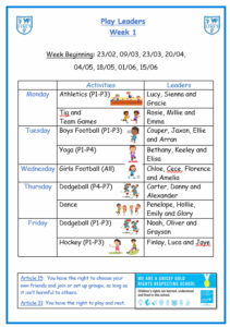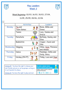 Primary 6 this term are our Play Leaders who provide the following clubs on a daily basis within the playground.