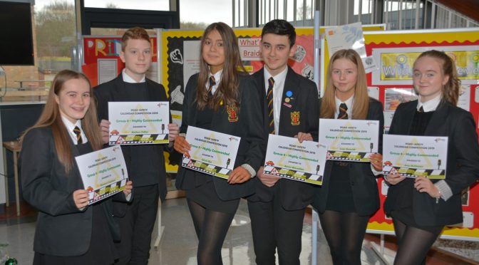Art and Design pupils from the school entered their poster designs in this year’s North Lanarkshire Calendar competition. After all their hard work a good number of pupils were awarded highly commended. This is a great result as there were over 1900 entries from schools all over North Lanarkshire and the school was pleased to gain so many commended awards for our pupils’ work.