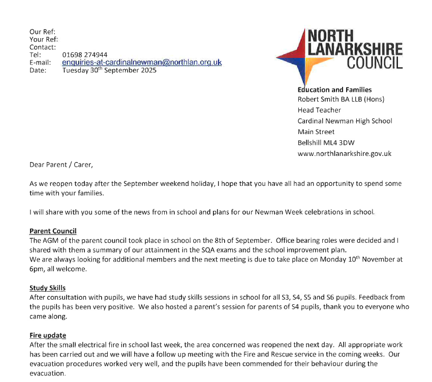 Cardinal Newman High School, Bellshill, North Lanarkshire Council