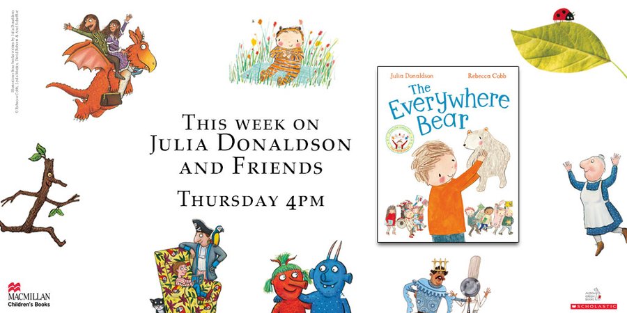 Exciting news! This week’s ‘Julia Donaldson and Friends’ broadcast will feature a reading of The Everywhere Bear by Julia and illustrator @rebecca_cobb will also be teaching you how to draw your very own Everywhere Bear. Tune into the Gruffalo Facebook Thursday at 4pm to watch.
