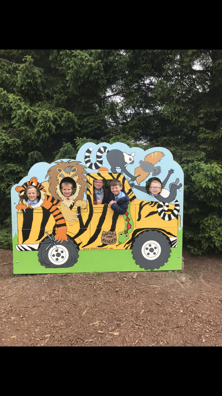 Primary 2/3 had a ball at Blair Drummond Safari Park on Monday! We crammed so much into our day and we were lucky to have nice dry weather. We saw lots of animals on the bus safari, visited Chimp Island, went to the park and even saw a real live sea lion show. Phew, what a busy day!