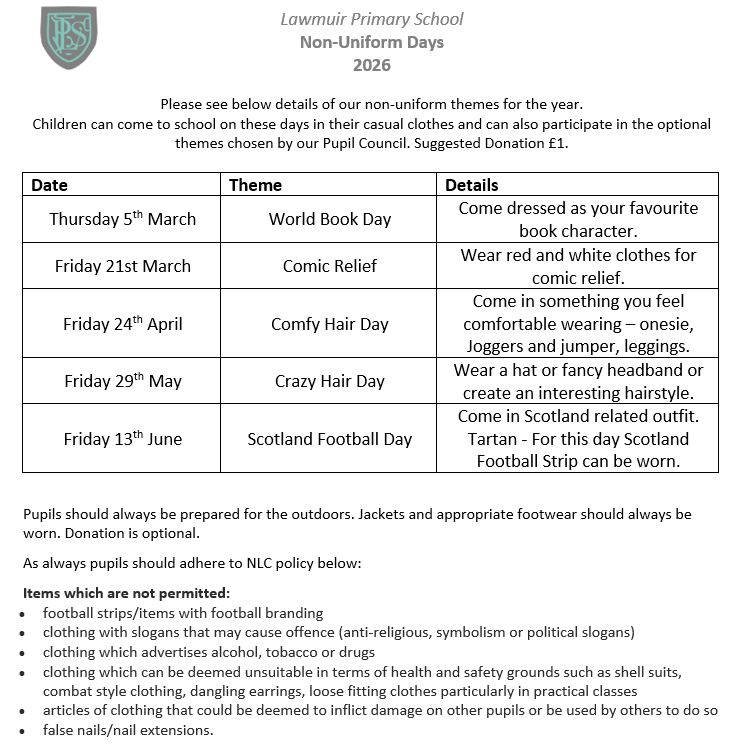 • Non-Uniform Days 2026