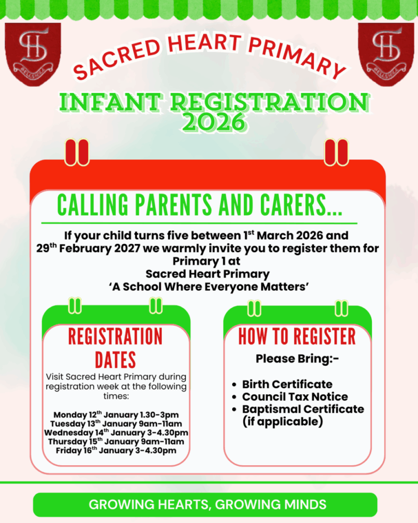 Please see the information below as to dates and times for enrolment for academic year 2026/27