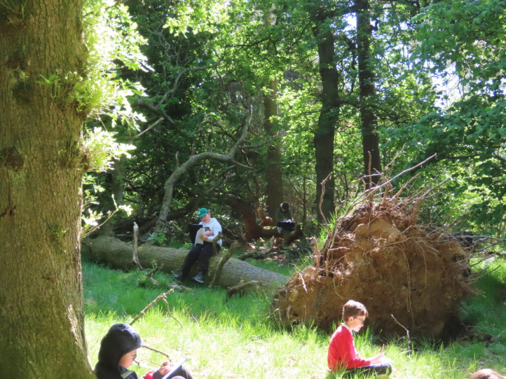 After the poetry session we had some snacks, being careful with our litter then headed over to School Wood.