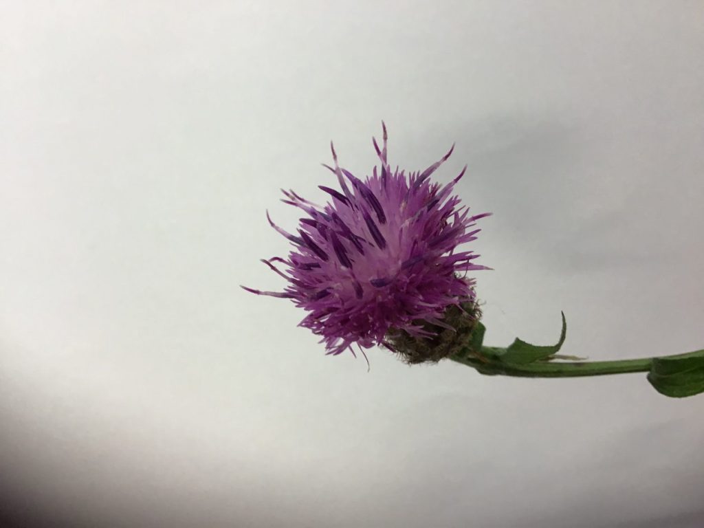 How you can tell the difference between knapweed and a thistle is that a thistle is spiky and a knapweed is not spiky