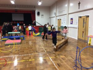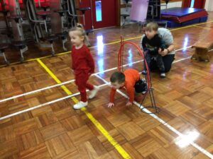 This morning, all the children in the nursery took part in a sponsored obstacle course. The primary 7 children set up and helped with this and we had so much fun. All of the children took part in this, moving around safely with their friends.