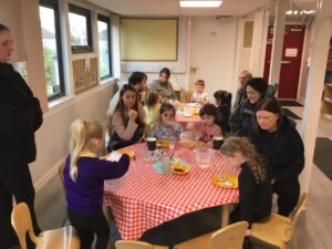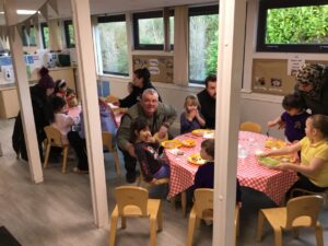 Some of our parents and carers joined us yesterday for tea. As our story of the month is ‘The Tiger Who Came to Tea’, we decided to recreate the story with our families.