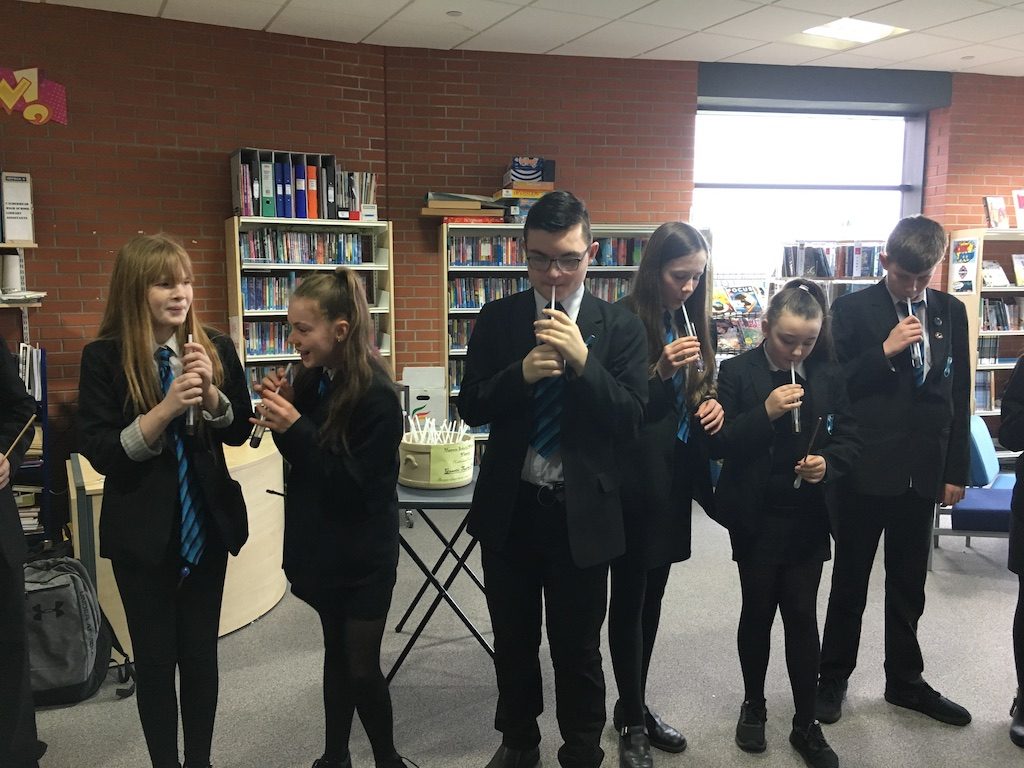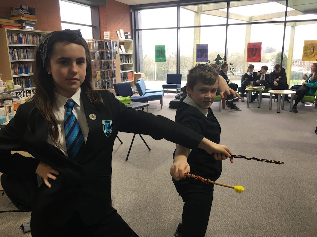 Calderhead High School’s Library was transformed into Hogwarts School of Witchcraft and Wizardy to celebrate Harry Potter Book Night and pupils enjoyed a myriad of Harry Potter related activities. Mrs Crosbie started the event with an excellent Potions class, where pupils tried some magic experiments including catching goblin eggs, creating goblin slime and catching a bothersome poltergeist. Pupils were then ‘sorted’ into their various Hogwarts houses and visited Ollivander’s wand shop where they created their own magic wands. As Chinese New Year had taken place earlier that week, we were delighted to welcome Catherine Lumsden, a former Tianjin scholar, who taught us spells in Mandarin and some useful phrases to use when meeting Chinese wizards and witches. We finished the event with a spell casting competition and Robert and Logyne were worthy winners. A great time was had by all.