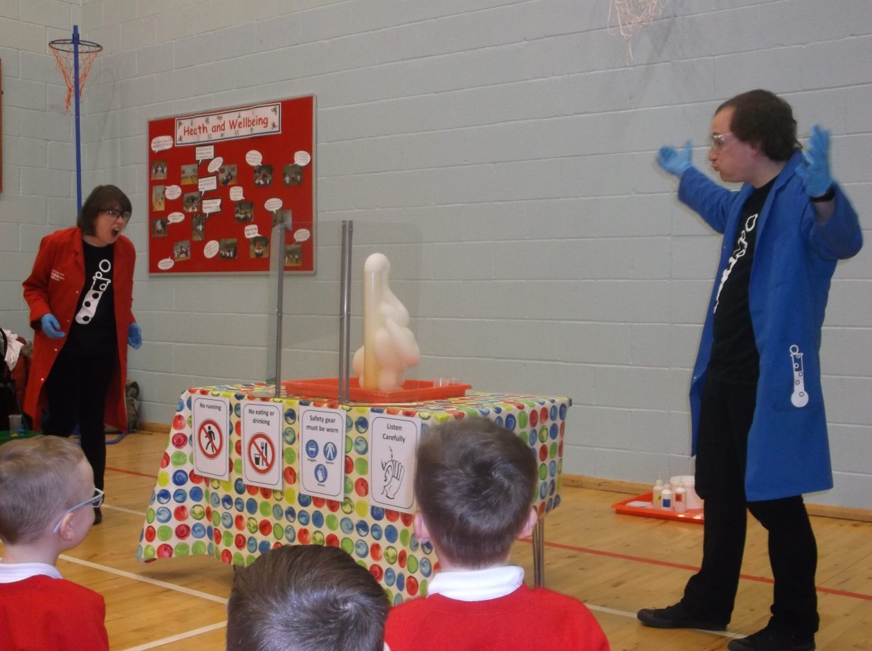 Base 2 enjoyed a science workshop about solids, liquids and gases. They learned how to identify each of them and then conducted some experiments with liquids to make a fizz. Then they added a solid to the liquids to look for fizz. Finally Matthew and Linda, the lovely scientists, did a whopper of an experiment which produced a ‘snake of bubbles’! We had a great time on Tuesday morning.
