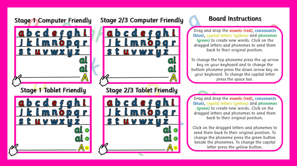 In North Lanarkshire our schools use Magnetic Phonics Boards in class to help develop pupils phonics and spelling understanding. During the multiple lockdowns pupils did not have access to these boards and I thought of an idea to create an online version that anyone could access via a tablet, laptop or PC.