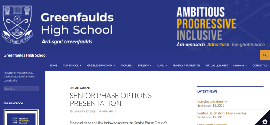 One of the key messages to pupils at assemblies this week was that in the next 10 days, pupils will begin making decisions about their subjects for next year. This can be a tricky time for pupils and families. Over the next few weeks we will be in touch with families with a number of pieces of information, but if you would like to start the discussions at home, our Course Choice section of the website (S2 pupils, S3 pupils, Senior Pupils) is an excellent ‘one stop shop’ of resources and conversation prompts. Whilst some of the information is in the process of being updated, the details contained in the different sections are still very relevant.