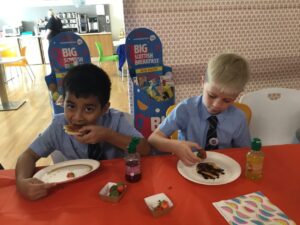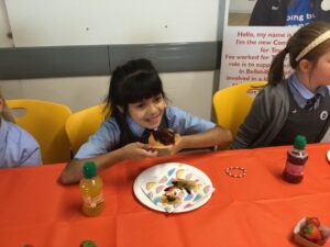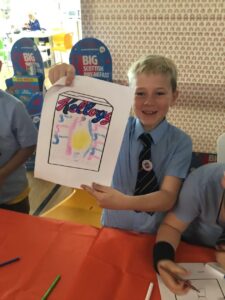 Tesco Bellshill invited us along to take part in ‘The Big Scottish Breakfast’ with Kellogg’s. We had cereal, pancakes and delicious fruit before meeting Coco the Monkey! A competition was held to design the most creative new cereal for Kellogg’s. We had to think about the name of our cereal and the packaging.