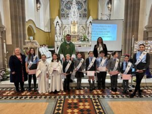 At Friday’s Mass our Mini Vinnies participated in a Commissioning Ceremony where they were welcomed into the St. Vincent de Paul society. The Mini Vinnies are the youngest members of the SVP organisation who try to treat others as they would like to be treated. During the ceremony, they made a pledge to embody the values of kindness and service. Well done to them all.