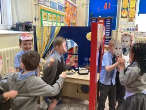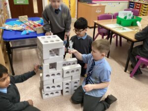 Primary 1 received a letter from the three little pigs today asking them to help by retelling their story, and by rebuilding some of their treasures. They had so much fun working together on their challenges