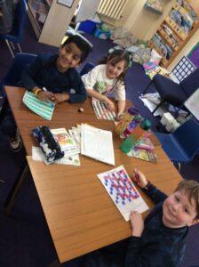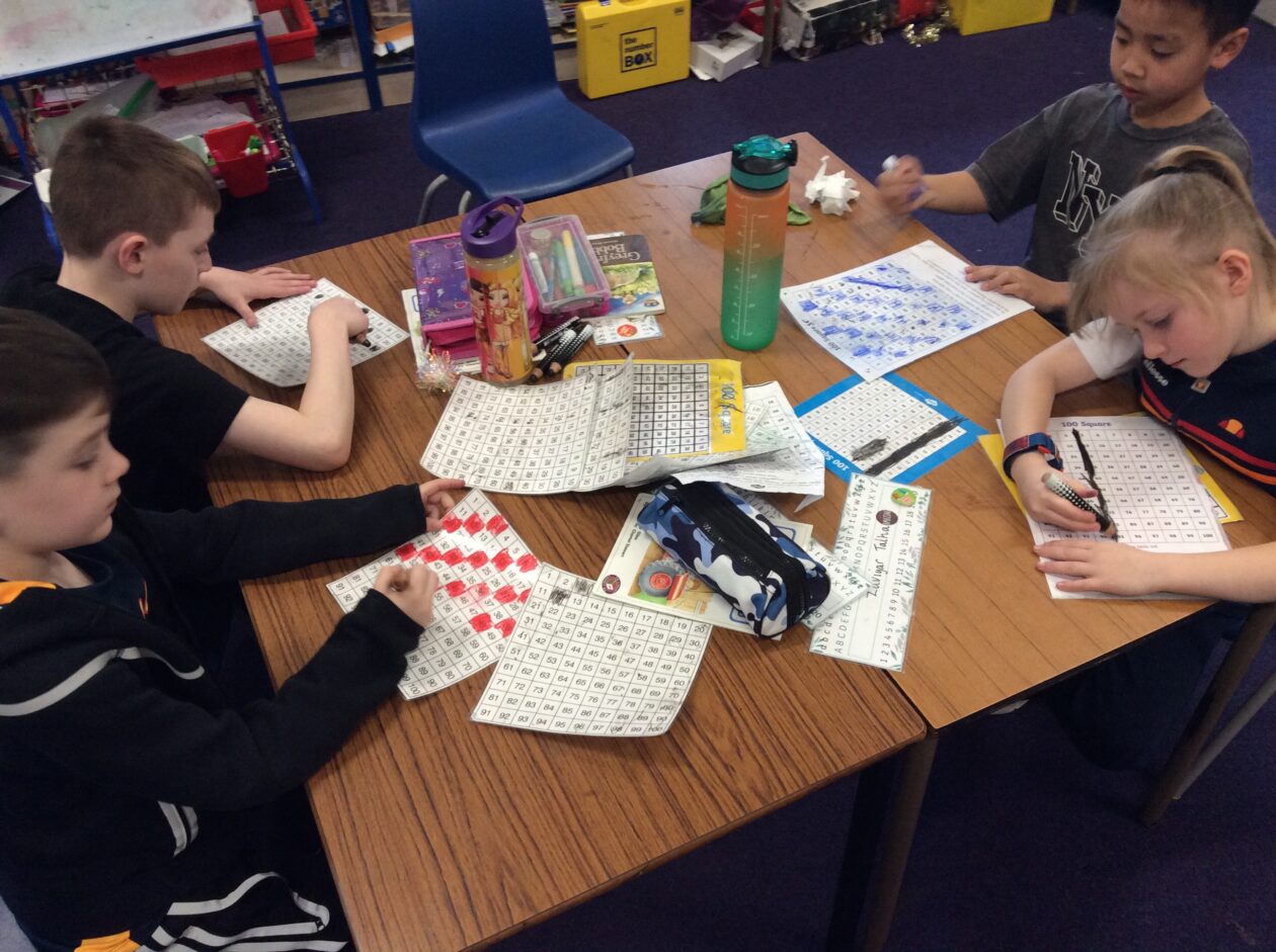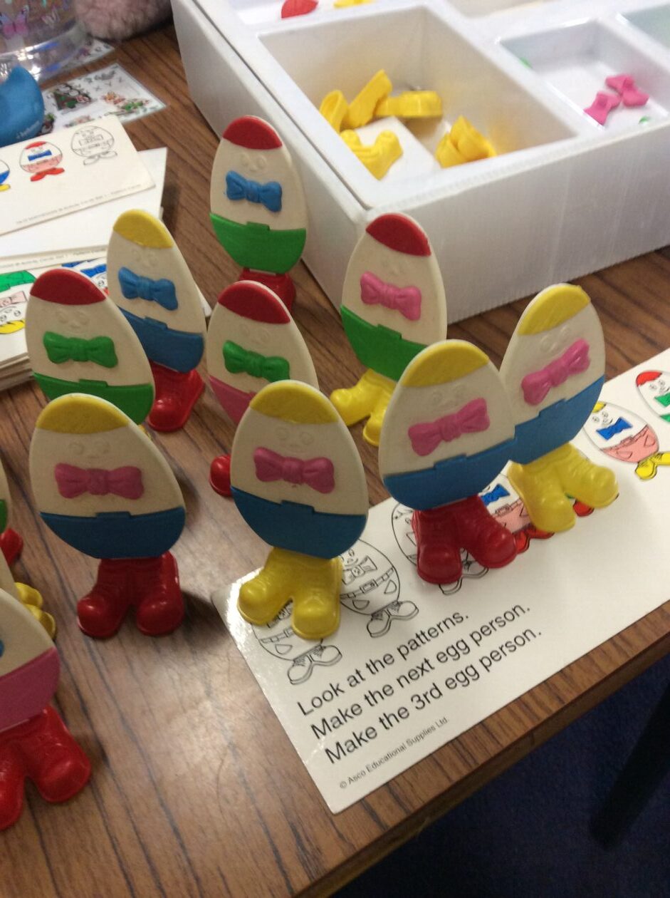 P3/2 explored pattern using a range of concrete materials, drawing picture patterns and finding number patterns in 100-squares, linking to multiplication.