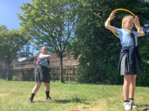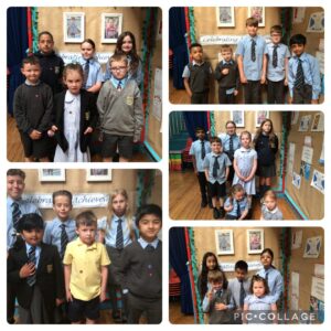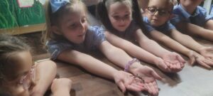 Children sharing their learning and helping us at Holy Family to Learn the Hail Mary Prayer in Makaton, so that we can share our learning with our school and community .