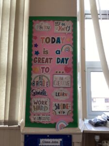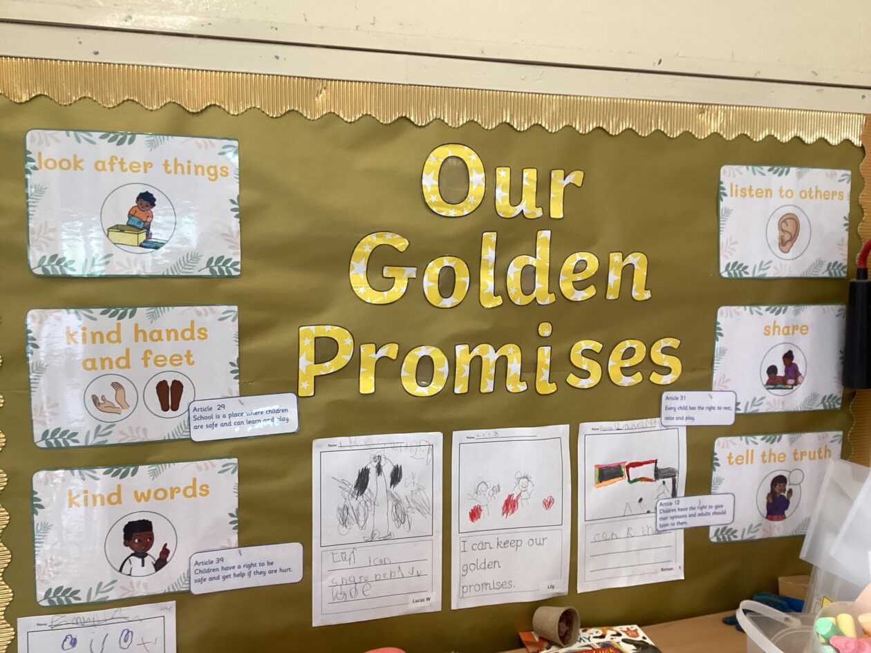 5 out of 7 classrooms created and displayed a class charter in line with our Rights Respecting Schools Award journey.