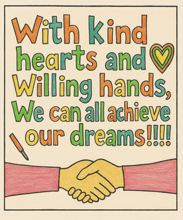 “With kind hearts and willing hands, we can all achieve our dreams!”