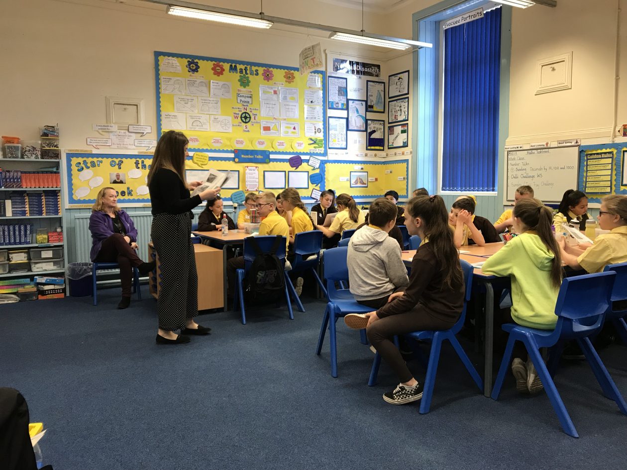 Miss Crossan from Coatbridge High came to work with all of our P7 pupils today. She was exploring Jack and the Beanstalk but with a twist. The pupils had to look at defence and prosecution in order to decide if Jack should go to jail.