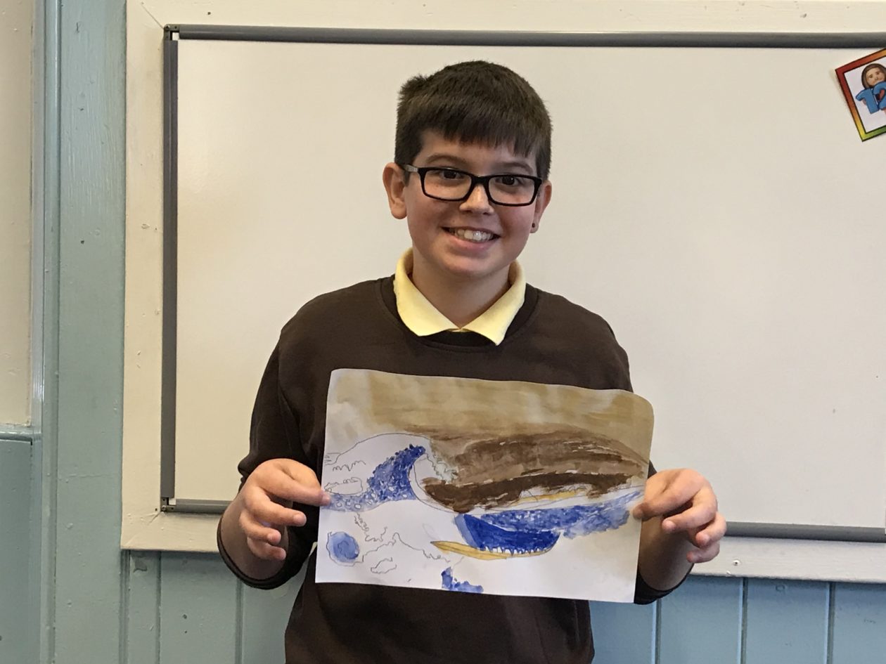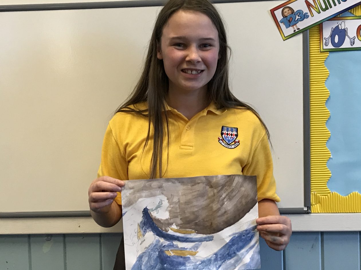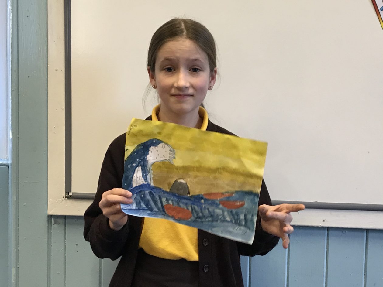 The pupils in Room 10 and Mrs Henderson all enjoyed recreating “The Great Wave” by Katsushika Hokusai as part of their Natural Disaters topic. We started with a pencil drawing then used watercolour to finish our artwork.