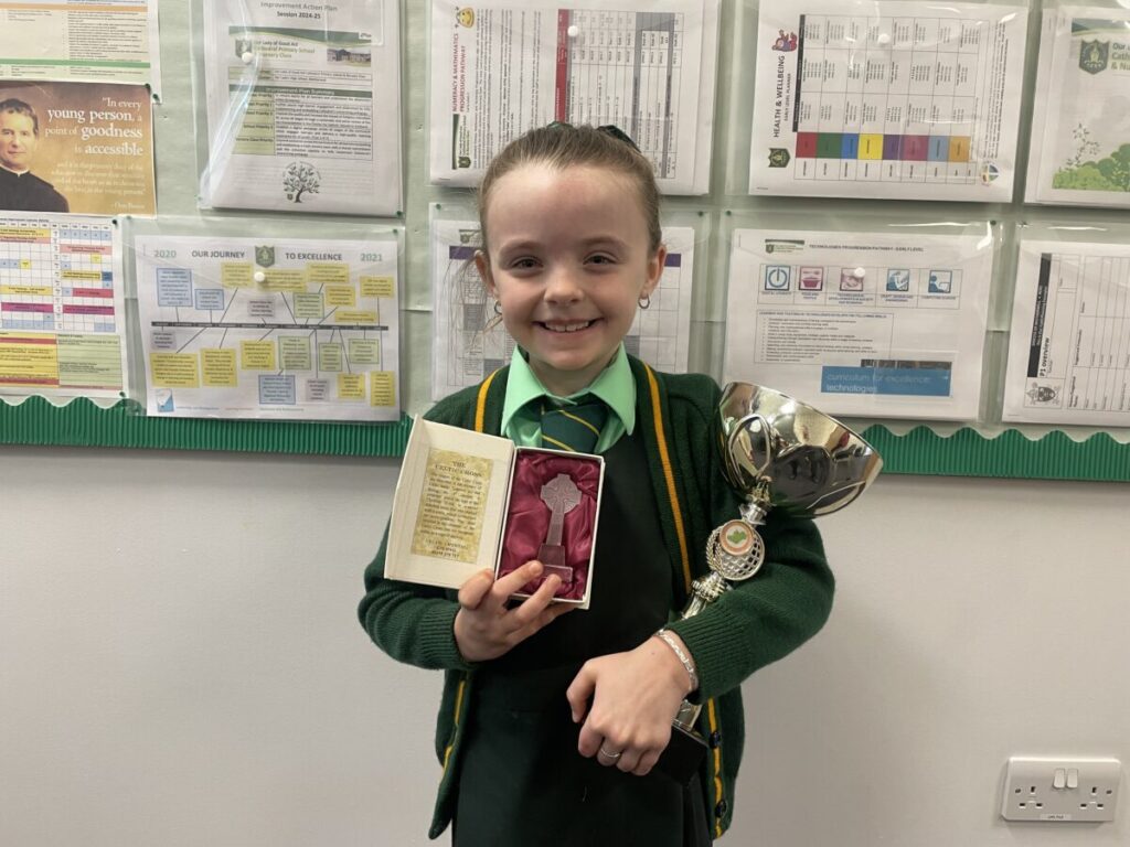 Her hard work and dedication were rewarded with an impressive trophy and a stunning crystal Celtic cross, which she accepted with great pride.