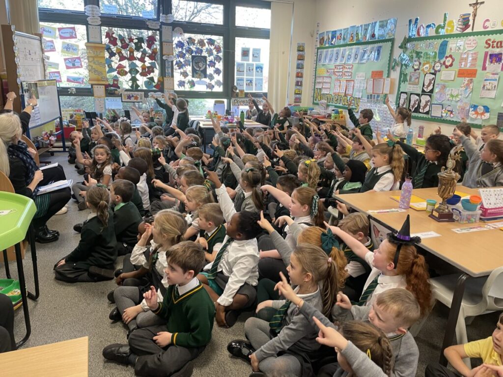 Mr Young experienced a lovely moment during his walk around the school on Monday 27th October when he came across Primary 1 and 2 pupils learning the songs for this year’s nativity, ‘Angel Express’.