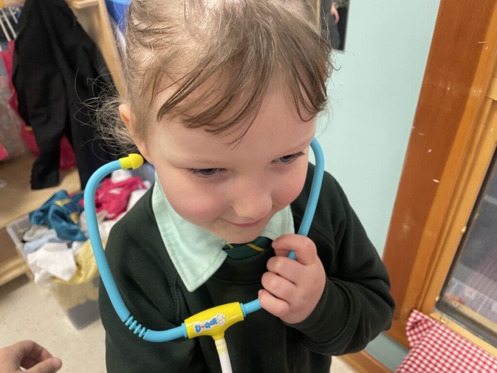 There was a nice surprise for Mr Young as he walked through Cathedral’s Play Zone on Wednesday 29th October. This imaginative Primary 1 learner had set up a very professional‑looking health clinic. Armed with a stethoscope, our young medic invited Mr Young to sit down and carried out a full health screening.