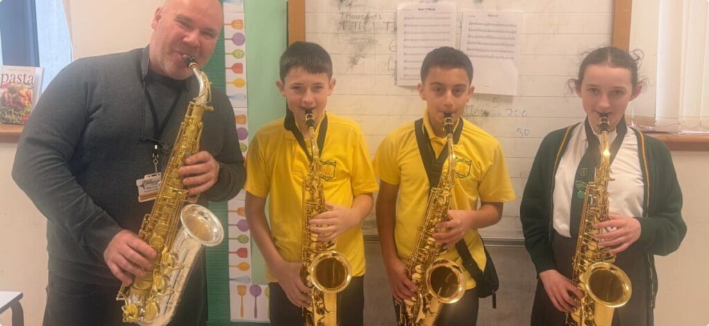 Wednesday 4th February saw a visit from one of Cathedral’s music specialists, Mr Cruikshank.  Developing their instrumental skills, these young saxophonists are learning to play ‘Stand By Me’ and ‘Back to Black’ by reading musical notation and playing together as a band.  Mrs Duffy was lucky enough to be treated to her own personal recital!
