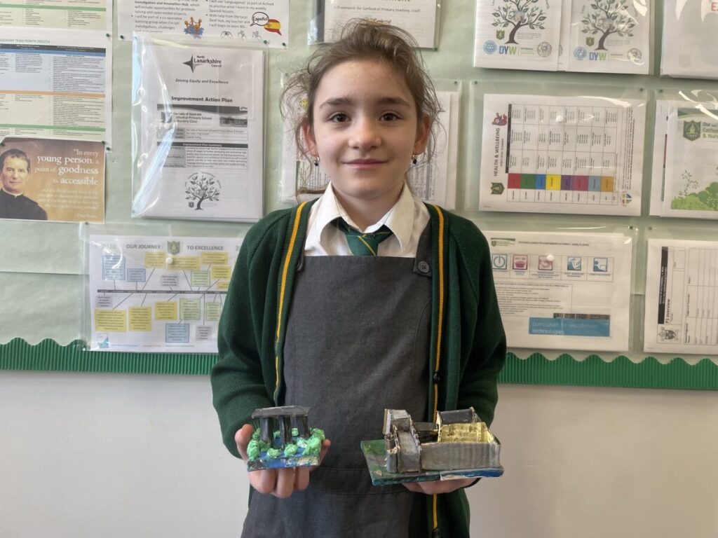This Primary 5 learner was so inspired by her current class topic, The Scottish Wars of Independence, that she spent time at home creating two fantastic models: one of Stirling Castle and one of Stirling Bridge. She proudly shared her intricate work with Mr Young on Monday 2nd March, and he was very impressed by the careful detail in both models.