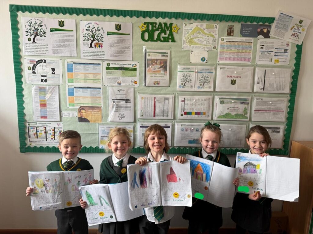 Our Primary 1 learners have reached an exciting milestone — writing their own dictated sentences independently with increased confidence and skill. On Wednesday 18th March, these enthusiastic young writers were eager to share their work with Mrs Duffy.