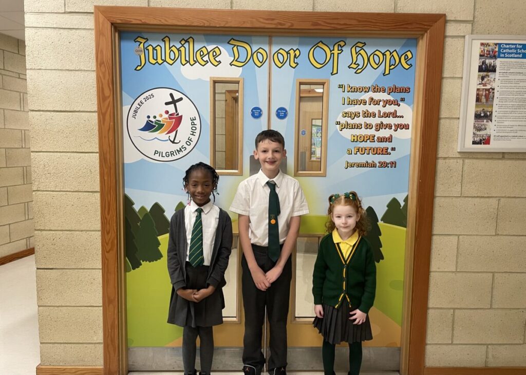 To mark the Jubilee, a special ‘Door of Hope’ was installed in Cathedral Primary School in January 2025. This is not a ‘holy door’, as that title is reserved for specific doors located in a number of Rome’s great basilicas, including St Peter’s in the Vatican. Rather, Cathedral’s Jubilee door, which all members of our school community pass through daily, serves as a prominent symbol of hope and a constant reminder to learners, staff and visitors of the hope which has its source in God and the bright future he has in store for each and every one of us.