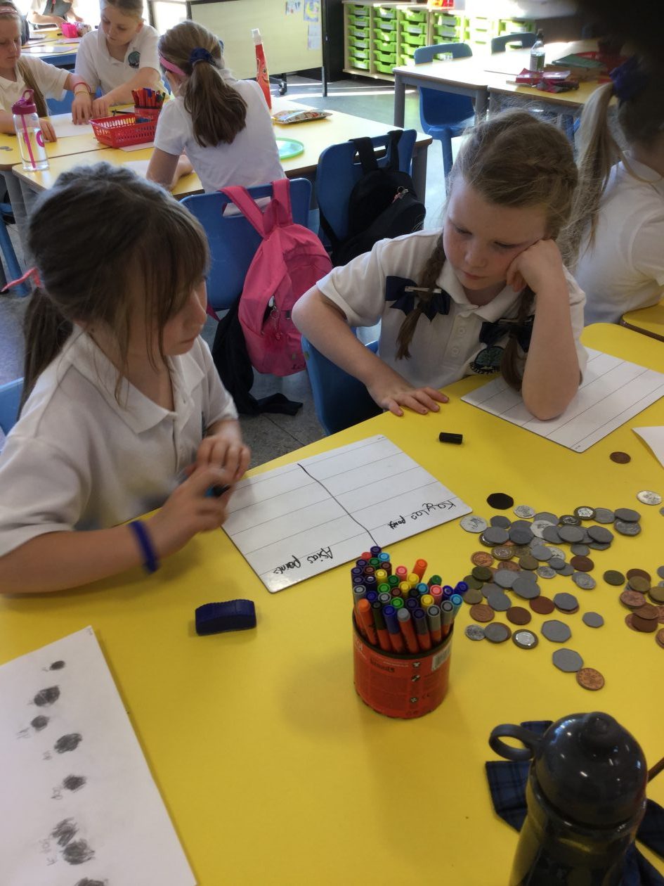 Primary 3 had a busy day today. This morning we enjoyed a PE lesson where the focus was ball handling. We moved around the room whilst throwing and catching a ball successfully. In Maths the topic we are learning about is money. We had lots of active activities today to practise using coins to make different totals. This afternoon we listened to Mrs Johnstone reading us, ‘Room on the Broom.’ We then re-told the story in our own words. Here are some photos from today.