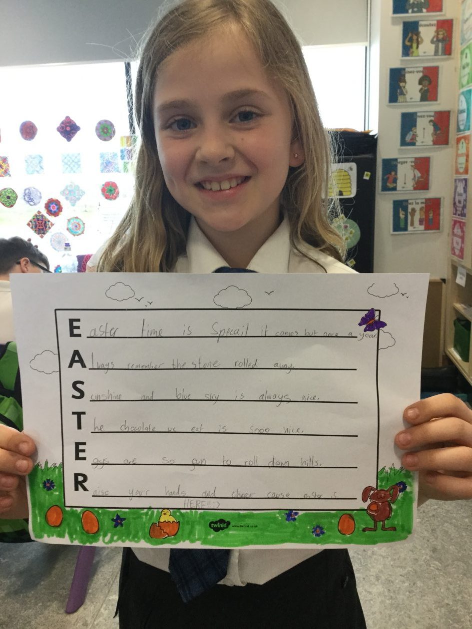 In Primary 5 everyone has written their own acrostic Easter poem…here are just a few of them.
