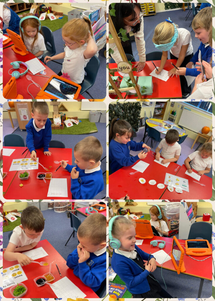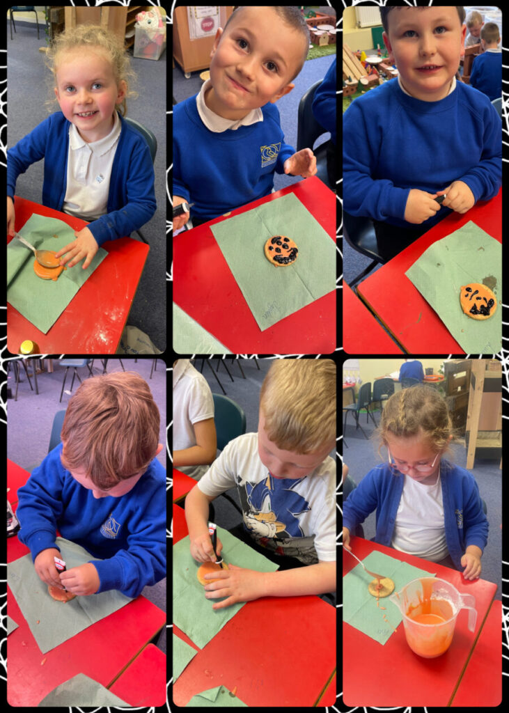 This week Primary 2 made pumpkin biscuits to celebrate Halloween and in maths we practised our addition strategies using a variety of spooky playful learning activities. On Monday we started our joint topic with P3 all about the Human Body. Mrs Merrison taught us about the 5 senses and tested them with different sense stations. We had to guess the smell on 5 different cotton pads, listen carefully and guess the sound bite, guess the mystery object by touch while blindfolded, say whether food we tasted was bitter, sour, sweet, savoury or salty and finally we had to look very carefully to spot 10 differences in a Halloween picture.
