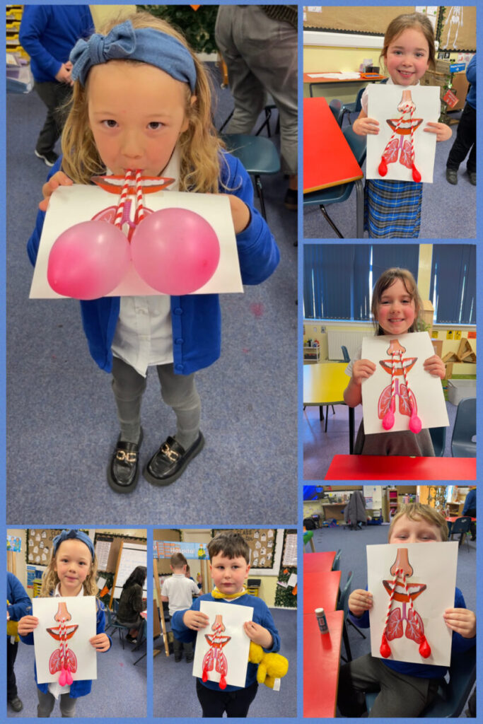 This week, Primary 2 learned about the Respiratory System. We practised locating and naming the different parts of the system and then created a model from straws and balloons to demonstrate how this system works.