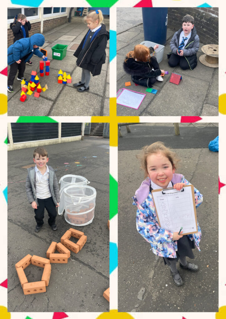 What a busy week it has been in P2. First, we took our learning on 2d shapes and 3d objects outside to complete a shape hunt. Ask us what shapes we spotted in nature. We also used loose parts to make shapes, made 3d objects from magnetic tile nets and had a go at drawing shapes using chalk.This week has been Reading Schools week so we made sure to complete DEAR (drop everything and read) time each day with Bluey. And finally, on Friday we received a very important letter from The team GB Winter Olympics Team. They asked for our help making sure they have all the right materials for their equipment and outfits, as well as help promoting the games and gathering support. Of course P2 were up for the challenge!!!
